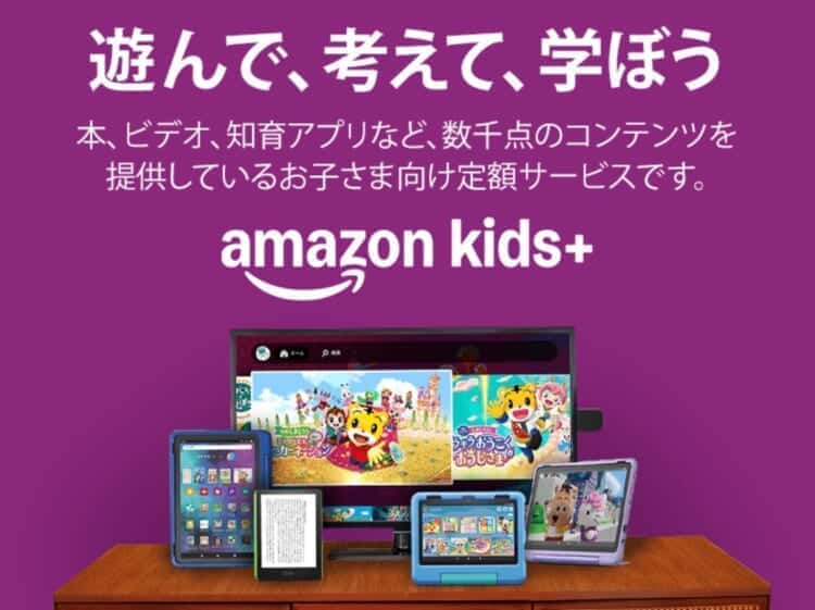 Fire HD 8 キッズモデルを購入すると、Amazonが提供する定額知育サービス「Amazon kids+」が1年間無料で利用できます。